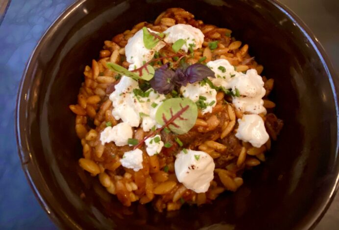 “Kokkinistò me Kritharàki” – the legendary mama classic: aromatic beef ragout in a red wine tomato sauce, served as our lunchtime highlight from 15–19 December!